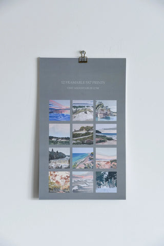 Celebrate the natural beauty of Northern Michigan all year long with the 2026 calendar by Michigan artist Amanda Bur. This thoughtfully designed calendar features twelve frameable 5×7 archival prints, each showcasing Amanda's signature soft tones and delicate attention to light and landscape. From quiet woodland paths to peaceful lakeshores, every month reveals a new scene inspired by the charm and calm of Michigan’s northern landscapes. Three of the prints highlight the iconic Straits of Mackinac and Mackinac Island, offering a timeless tribute to one of Michigan’s most beloved regions. The calendar comes with a simple binding clip for easy display, making it as practical as it is beautiful. Once the year is complete, the prints can be trimmed and framed, turning your calendar into a lasting art collection.